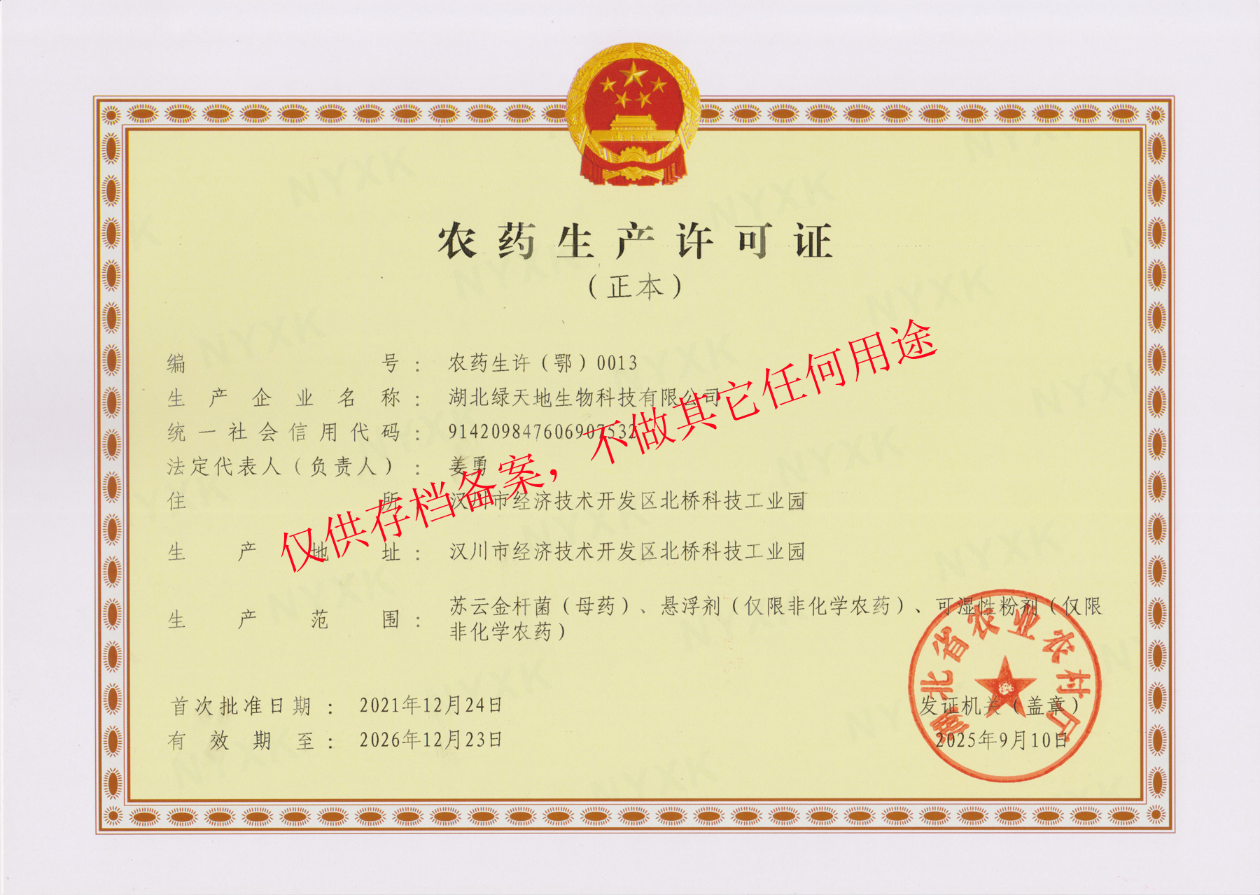 農(nóng)藥生產(chǎn)許可證